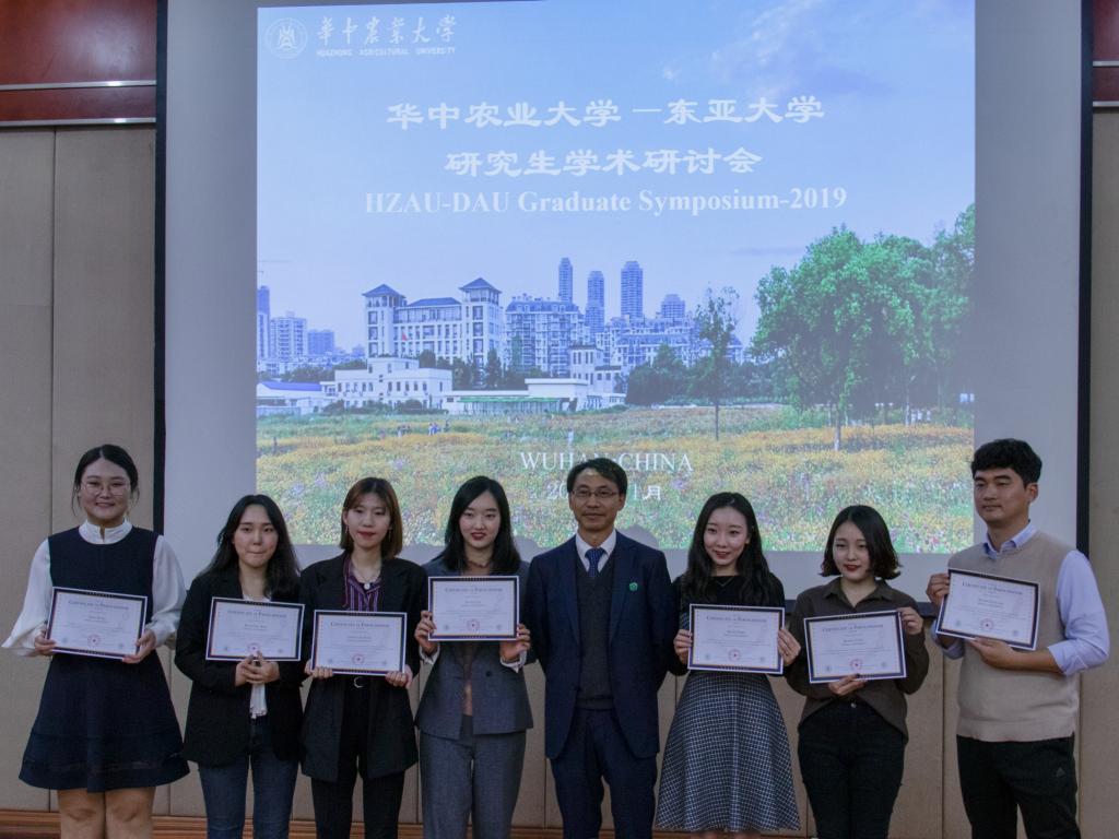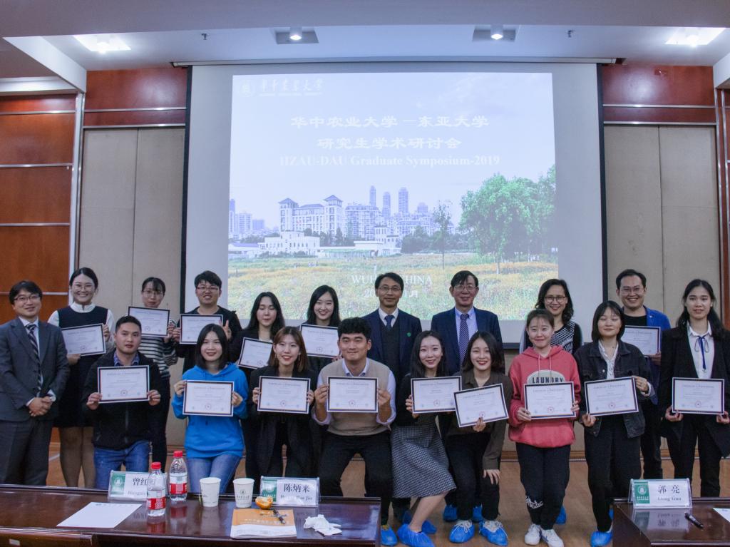 罗朝喜表示,严谨的报告与激烈的问答环节满足了双方交流合作、互相学习、共同进步的初衷,希望未来有更多的机会加强双方的交流与合作。陈炳来教授在讲话中谈到,本次交流对促进两校师生交流的意义重大,并盛情邀请我校师生前往东亚大学进行学术交流。两位教授还分别为作报告的研究生颁发了证书。