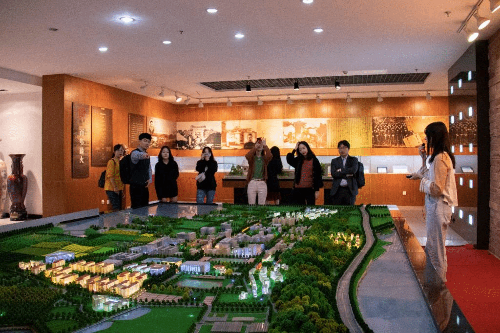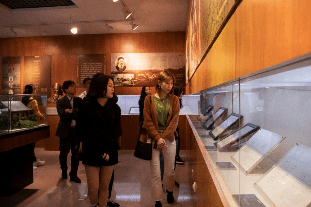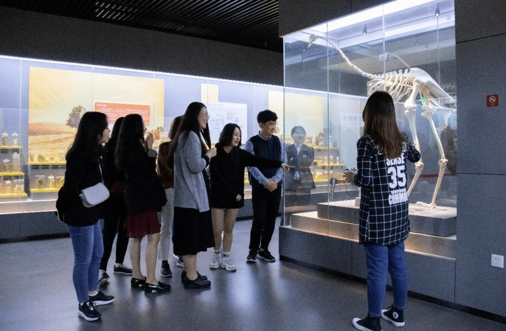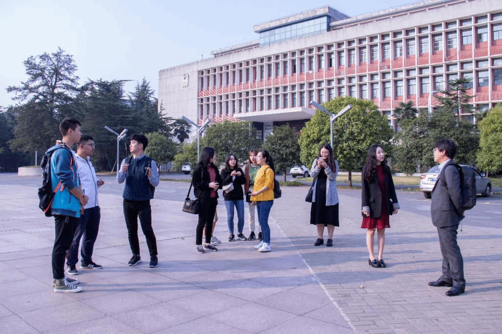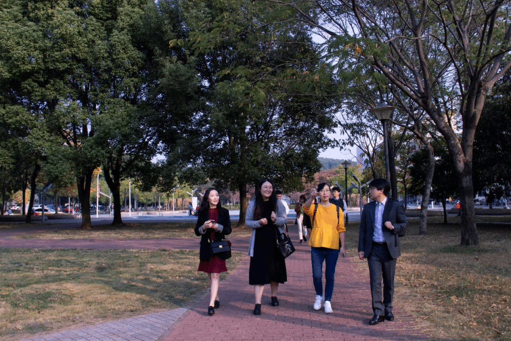 日上午,东亚大学一行在肖彬l老师和志愿者的带领下,参观了我校校园一隅。