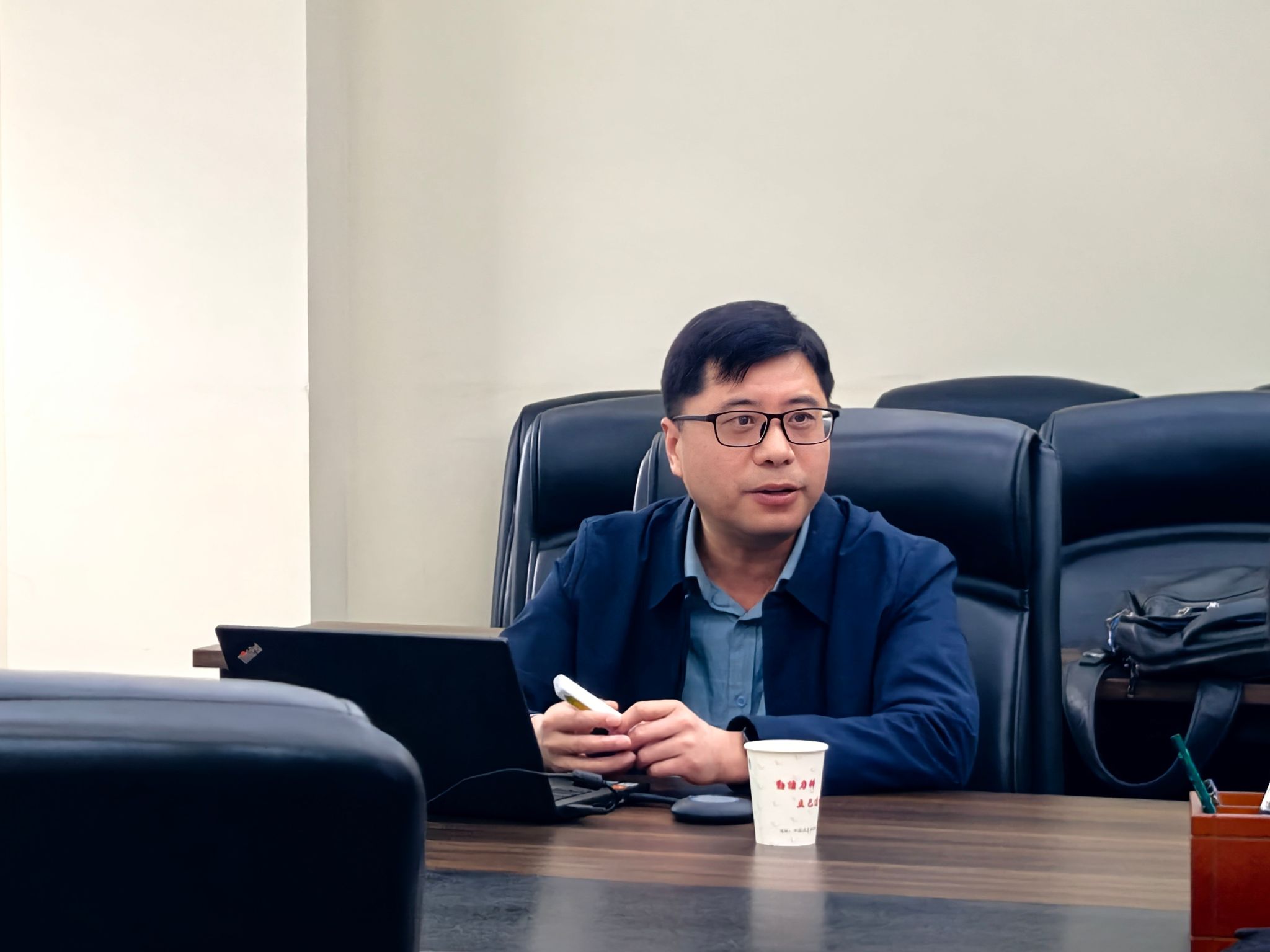 会上,彭李超向参会人员发放了河南大学招聘手册,帮助大家了解学校整体情况。他通过 PPT 展示,详细讲解了河南大学生物学科的发展现状、重点实验室的研究方向与科研成果,并介绍了当前的人才需求。高巍详细解读了岗位需求及科研支持条件,并针对青年教师成长通道等大家关心的问题进行解答。