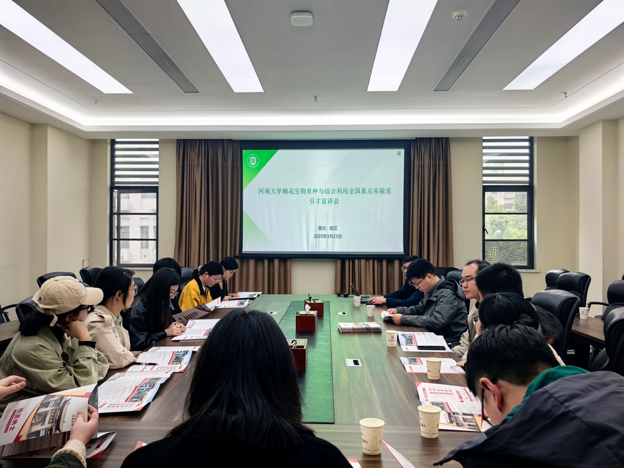 3月23日,河南大学棉花生物育种与综合利用全国重点实验室引才宣讲会在第三综合楼B308会议室举行。实验室副主任彭李超、高巍教授与学院十余名博士、博士后进行了面对面交流。