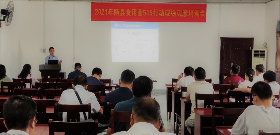 “515”行动随县食用菌现场观摩与培训会于7月30日在随县三里岗镇举行,来自2138cc太阳集团、湖北省农科院、武汉市农科院等“515”行动食用菌课题组成员、随州市农业局、随县及钟祥市农业局及有关乡镇负责人、企业及合作社代表近80人参加了活动。湖北省农业农村厅二级巡视员姜福元及种植业处、科教处、蔬菜办等部门负责人、2138cn太阳集团城党委书记周雄等应邀参加了现场观摩。