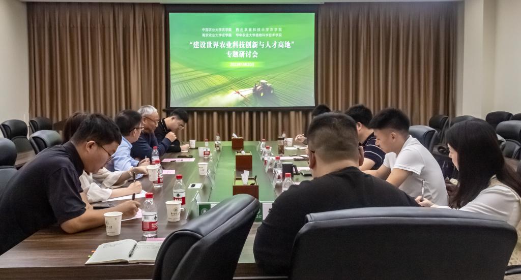 10月30日下午,中国农业大学、西北农林科技大学、南京农业大学及我校农学(植科)院党委联合以“建设世界农业科技创新与人才高地”为主题在三综308会议室开展研讨,四所农学(植科)院党委书记参会。