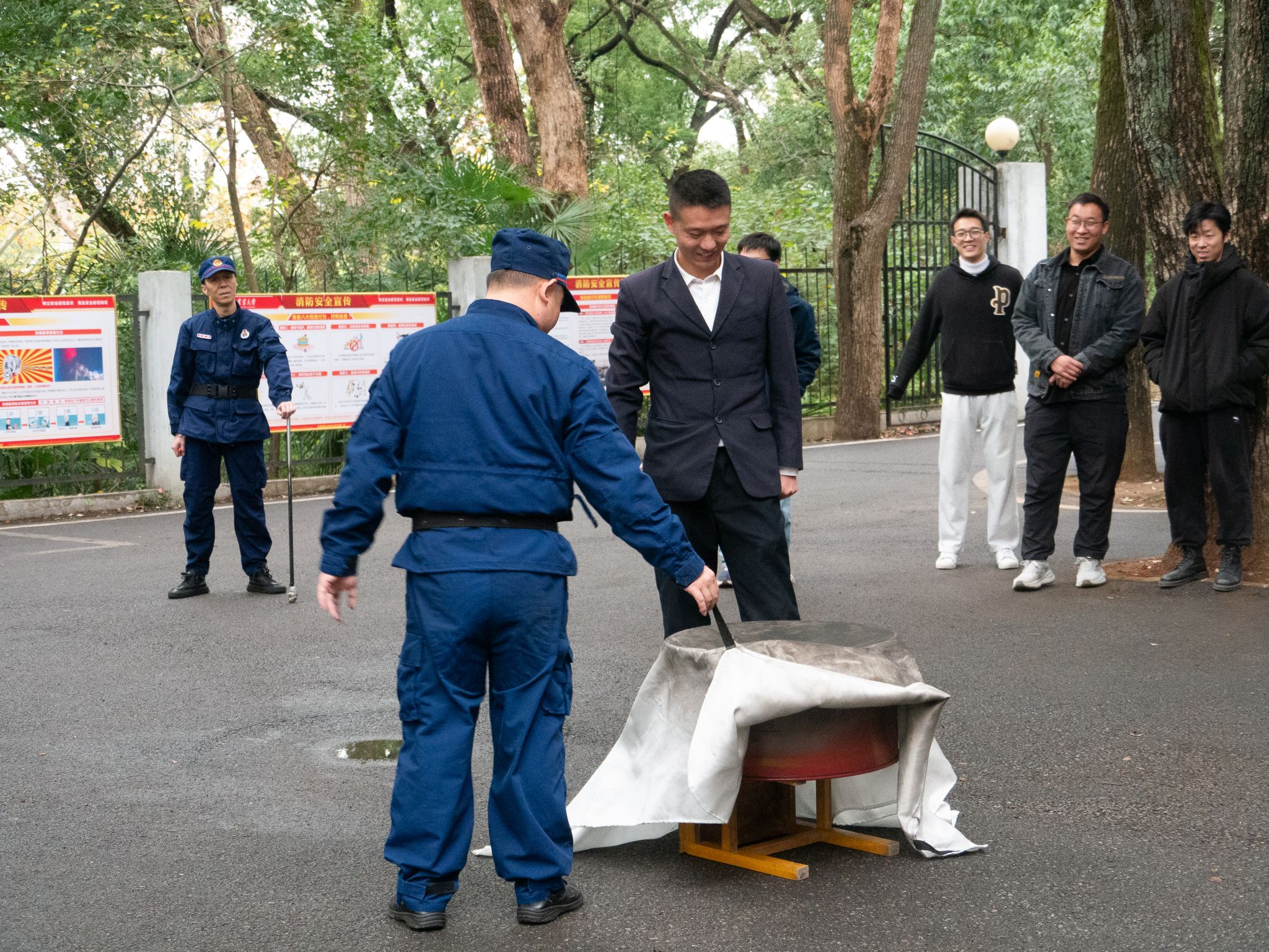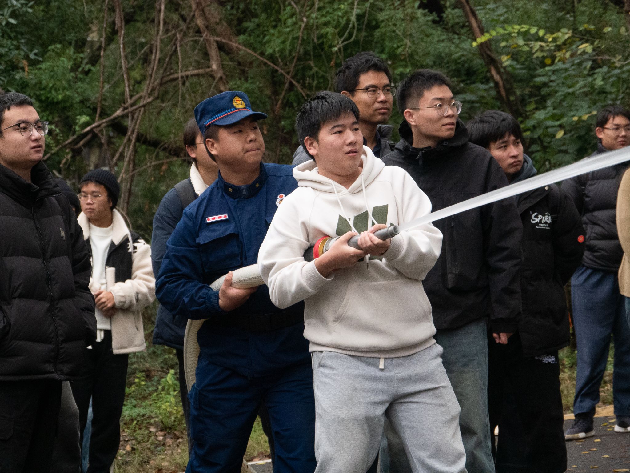 师生们参观了消防站内一系列消防装备,包括常见的消防车、灭火器、消防服和消火栓,以及照明灯、安全绳、灭火毯和消防扳手等。消防员逐一展示了这些装备的用途,还详细介绍了几种常用灭火器,如二氧化碳灭火器、泡沫灭火器、干粉灭火器、七氟丙烷灭火器等,并向师生强调,在面对火灾时,选择合适的灭火器至关重要,使用时必须根据具体的火灾类型和现场情况做出判断,切勿盲目使用。