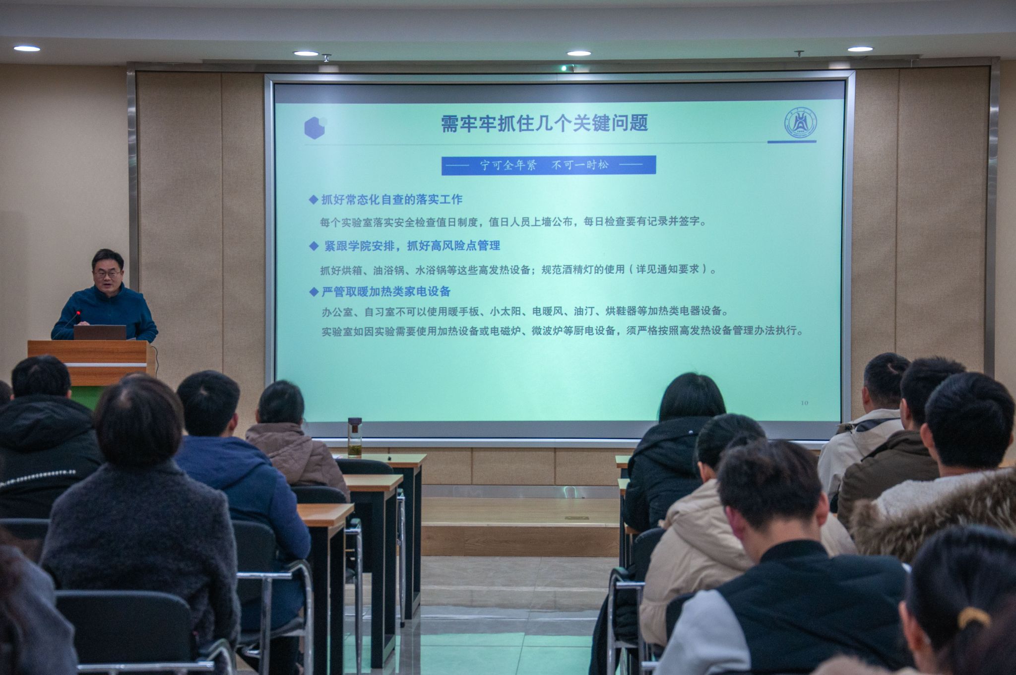 周雄提到,安全是一切工作的前提和基础,各实验室要严格落实安全检查值日制度,加强对烘箱、油浴锅、水浴锅等高发热设备的管理。同时,要加强防范电信诈骗工作,严守宿舍消防安全红线,筑牢校园安全防线。在考风考纪教育方面,要引导学生诚信应考,做好学业指导帮扶,教师要遵守教学规范,严肃教学纪律,注意试卷相关归档材料的规范性。针对研究生教育工作,需加强过程分类指导,助力学生明晰生涯规划,加强就业引导,推动学生就业思维转变。在国际合作与交流方面,要与有影响力的国际组织、一流学院、区域机构开展常态化合作,努力建立长期稳定的一流国际合作伙伴关系。最后,周雄就2024年度述职交流汇报工作进行了提醒,确保各项工作顺利有序地开展。