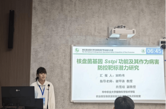 植保2203宋昀书《核盘菌基因Sstpi功能及其作为病害防控靶标潜力研究》在“本科生学术交流报告”项目中获得特等奖。作品将前沿分子生物学技术与绿色农药研发理念相融合,通过基因功能解析与生防潜力验证,系统阐明了Sstpi基因作为新型RNA生物农药靶标的可行性,兼具重要理论价值与广阔应用前景。