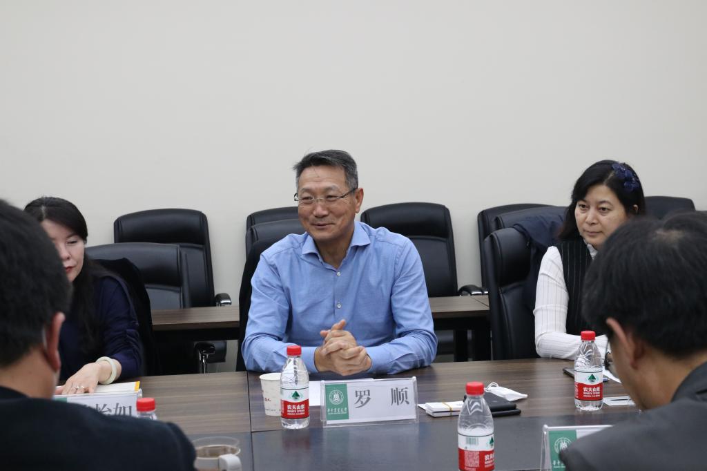 (通讯员 许承慧)11月3日,澳斯康集团总裁罗顺、建顺生物常务副总裁姜怡如一行6人来到我院考察交流,学院党委书记周雄、副书记孙超、副院长罗朝喜、农学系系主任胡立勇等学院领导和教研室教师代表参加座谈。座谈会于第三综合楼B308会议室举行,由周雄主持。