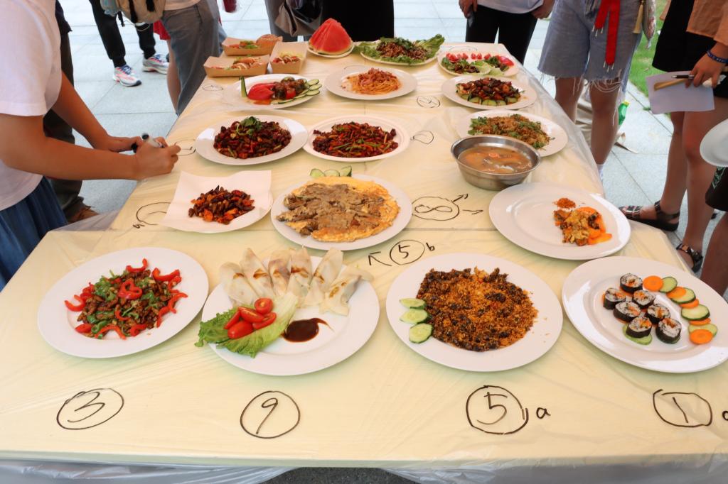 本次活动也邀请了十五位学生评委为十组参赛选手精心准备的食物打分,包括“色”“香”“味”“创新型”四个打分项。周兴苗在品尝的过程中,大力赞赏了“冲出重围战队”小组的菜肴。他评价道:“提倡蒸煮,减少油炸,因为这样能保留更多营养,也有益于健康。我之所以赞赏这盘菜,就是因为他们做到了这一点。”他认为,菜肴的烹饪需要色香味俱全,尤其是味道具备很大的比重。“这是我们昆虫宴活动需要走的路线,这也是未来需要同学们贡献的力量。”