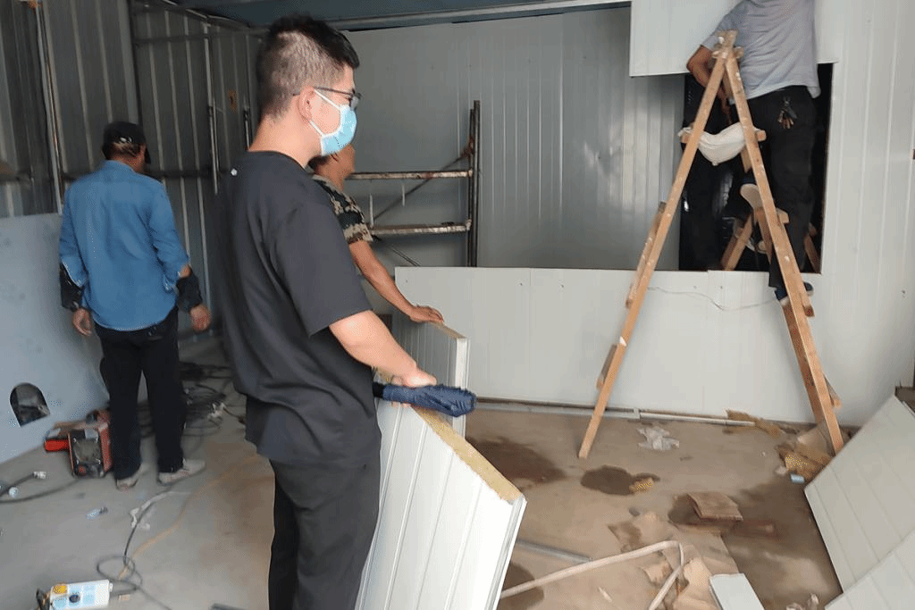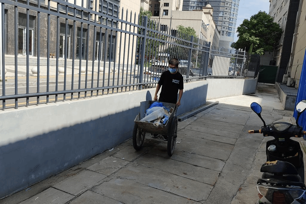 7月12日早上,郑子龙来到襄阳市樊城区大庆西路35号施工小组报道,在接下来的七天内,郑子龙的工作内容为废弃物和施工残骸的清扫并转运至垃圾车、墙壁和天花板的清理以及砖块的摆放。经了解得知,该位置与医院本部较远,出于对减少居民活动和方便居民接种的考虑,医院选择该位置为疫苗站。18日,清扫工作顺利完成。