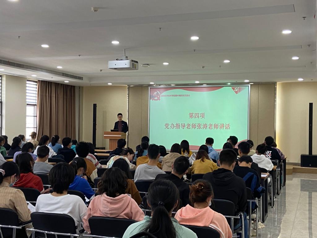 之后,大学生党建工作办公室指导老师张涛进行了讲话,他首先对顺利通过遴选,成为入党积极分子的同学们表示祝贺。随后,他以“为什么要学”、“要如何学”为线,向入党积极分子交流了他对于党的理论知识学习的观点。他指出,坚定的理想信念是我们的党不断取得成功的关键,理想信念不会自发产生,必须有理论支撑。我们要系统掌握马克思主义理论,强化理想信念。谈及“要如何学”,他强调,态度比方法和技巧更重要,我们要化被动为主动,以“等不起”的紧迫感、“慢不得”的危机感、“坐不住”的责任感为动力,保持学习状态,激发学习热情。