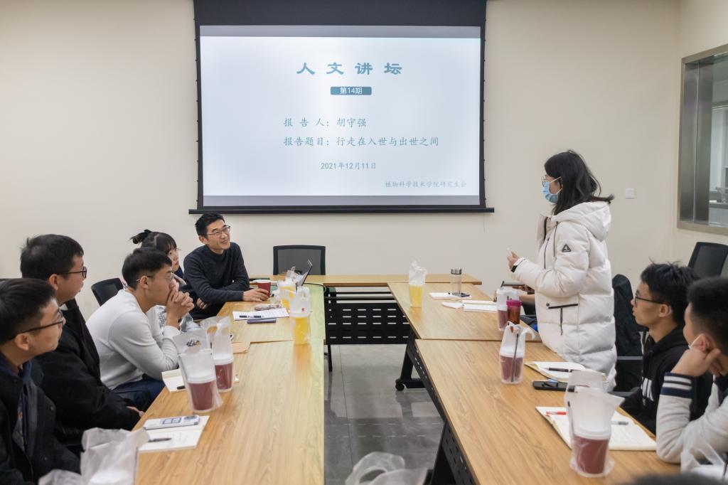 12月11日晚,2138cn太阳集团城第十四期“人文讲坛”活动在第三综合楼C302活动室举行。我校外国语学院党委书记胡守强受邀以“行走在入世与出世之间”为主题分享他的人生处世观,2138cn太阳集团城王满囷教授及30余名研究生参加活动。