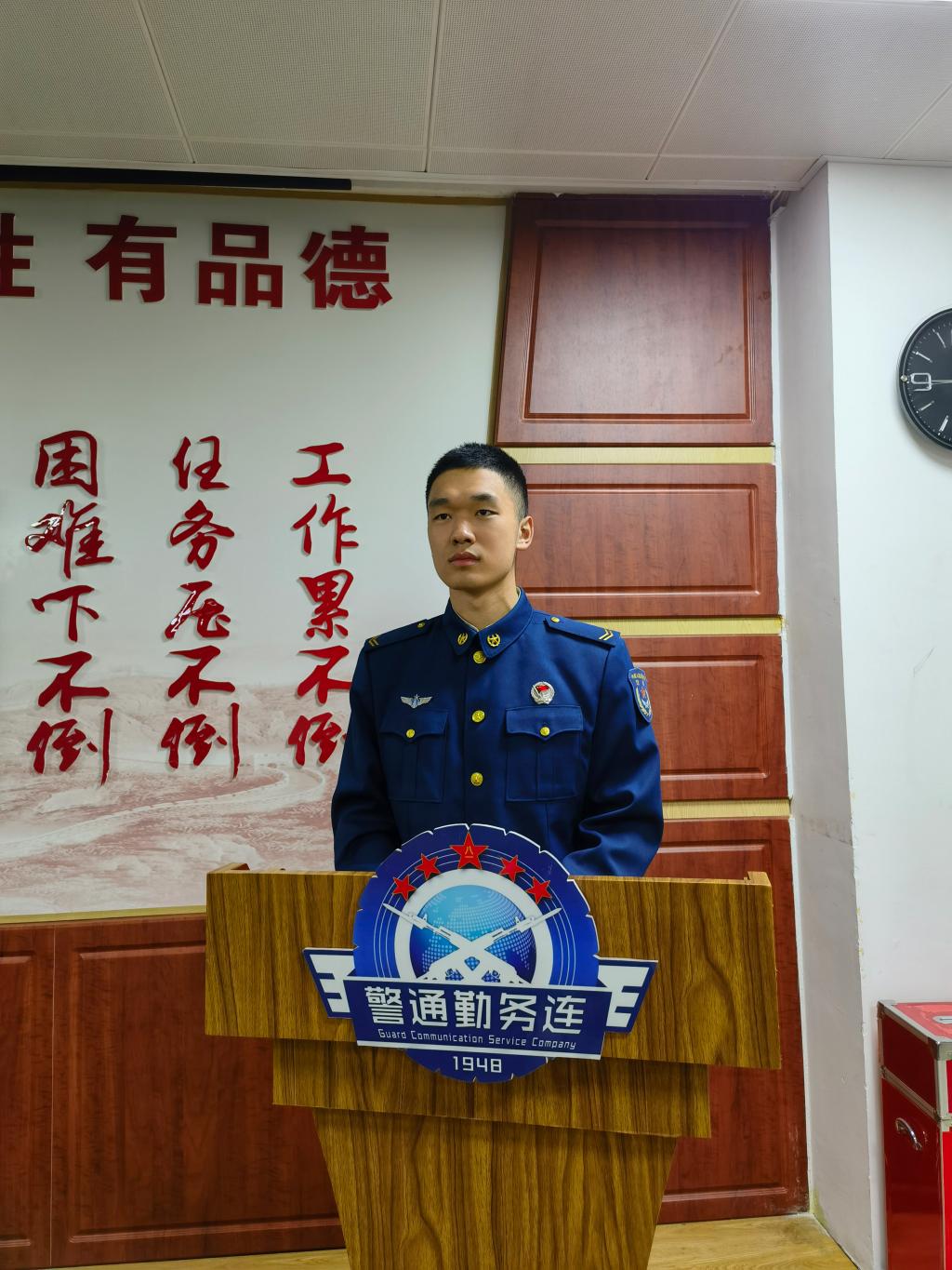 新兵连,是他们“利刃之新发于硎”的起点。“朝六晚十”的日子持续了100天,他说:“100天,考验如火,淬炼真金,每一天都过的充实无比,不曾闲暇去想其他。”6:00起床整理内务,6:10早操,7:20早饭,而后是上午两节操课,下午两节体能训练课。有足以打败敌人的体能储备,更需要有打不垮的头脑武装、攻不破的思想阵地,于是晚饭后他们会学习政治理论知识、党史军史“小红本”以及条令条例……忙碌的生活让他初入军营就跳出了舒适圈,投入分秒必争的“战斗”。“这是一个大家都不熟悉的领域,多努力一点你就会超越别人多一点。”他回忆那段时光,即使中午休息时间,大家也在加练体能、提高内务,抓住每一个弯道超车的机会。