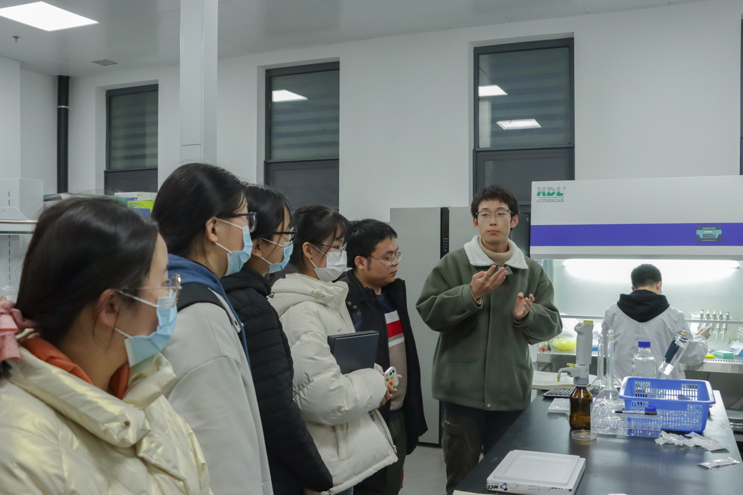 访谈结束后,在朱芬及其学生的带领下,同学们对科研实验室进行了系统性地参观。面对实验室内各种各样的陌生仪器和浓厚的学术氛围,现场的同学们深受鼓舞、热情高涨,积极提出疑问,认真学习各类仪器的使用技巧,收获颇丰,受益匪浅。