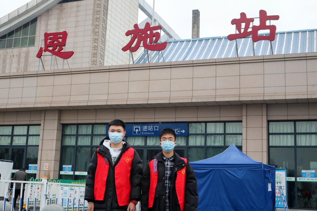 寒假期间,植生2110班黎鸿洋得知了家乡恩施火车站在招募疫情防控志愿者的消息后,果断报名。每天他都很早出门,前往车站协助工作人员疏导出站旅客,同时介绍当地防疫政策。他感慨道:“每一名志愿者都怀揣着一颗炽热的心,很荣幸,我能参与其中。”除此之外,植生2104班曹煕妍也在湖南省郴州市的高铁站悉心服务每一位返乡人士,坚守在家乡疫情防控的无声战线。