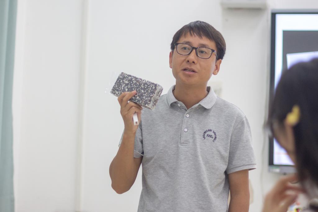 江洋向同学们简要介绍小龙虾原产于北美,20世纪30年代由日本引入我国。由于契合我国的餐饮文化符合年轻人的口味,近年来小龙虾养殖发展迅速,湖北省稻虾养殖面积更是居于全国前列。他进一步向同学们介绍稻虾绿色种养模式,“这种模式兼顾水稻种植和小龙虾养殖提高资源利用效率和周年产出效率。”但是江洋也谈到,稻虾连作模式也是存在问题的,尤其是在农户实际生产中重虾轻稻现象明显,另一方面稻虾连作对于环境也有一定影响,容易造成土壤次生潜育和水体富营养化。他结合研究工作详细介绍到,目前团队致力于构建“稻—鸭—虾”种养模式,以“华墨香”水稻品种为核心,开展“虾稻连作”和“稻鸭共作”关键技术研究,形成在种养全过程中不打农药、不施化肥、不用渔药和精准饵料的“三不一精准”技术体系。