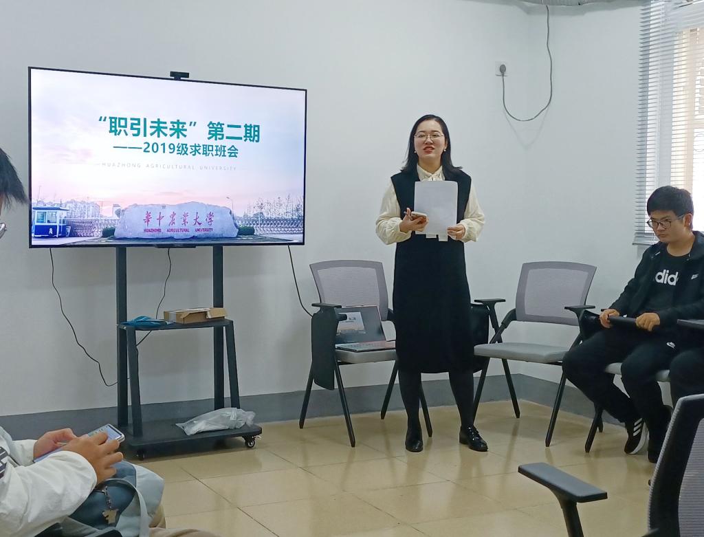 为解决求职过程中同学们遇到的各种问题,10月5日至6日,“职引未来”系列活动第二期:求职班会于荟七二楼开展,本次班会分为两期,我院辅导员明淇与19级50余名同学开展座谈,师生畅谈求职经验。