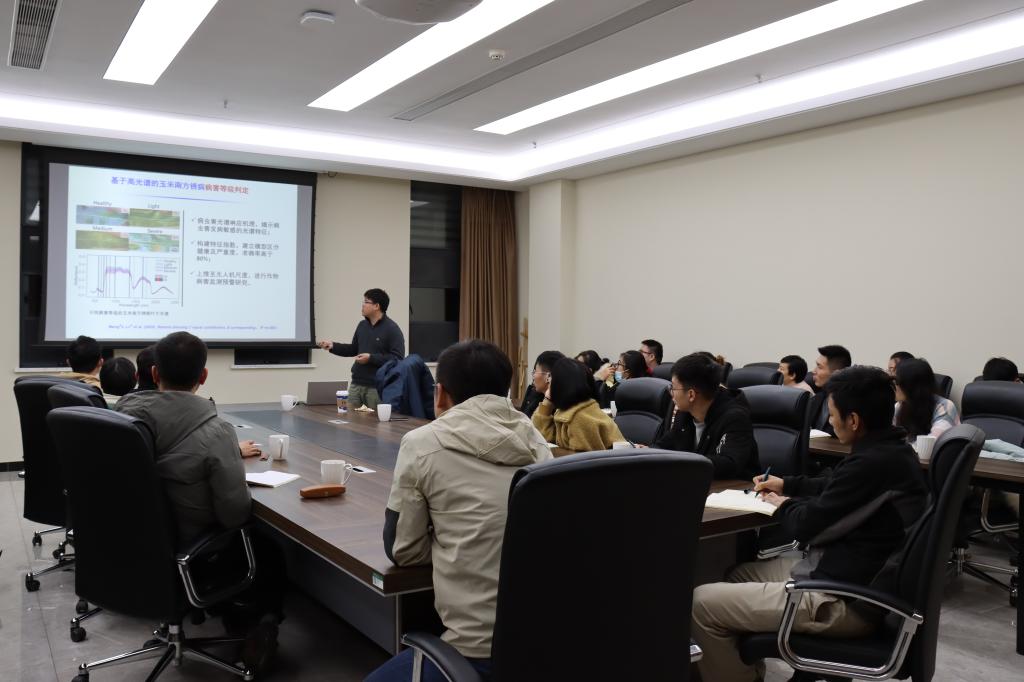 最后,到场的植科院师生与孟冉展开了轻松又热烈的互动讨论。话题热点聚焦于如何利用遥感技术提升农业“智能化”水平,针对植科院师生提出的农业生产实际问题,孟冉结合双方的专业知识与师生们探讨了自己的见解。研讨会结束后,参加此次活动的2020级硕士赵金方表示:“今晚的学术沙龙活动非常有意义。听完孟冉老师今天的精彩讲述,受益匪浅,平时我们应该有意识地扩充自己的知识面,更应该清醒地认识到现代农业学科交叉的大趋势,紧跟潮流,为智慧农业发展贡献自己的力量”。