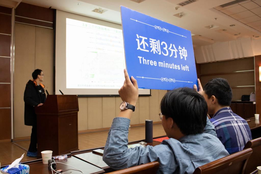 接下来进行博士组和硕士组的学术报告,每人限时10分钟,而后紧接5分钟的交流提问,共有21名研究生参与汇报。