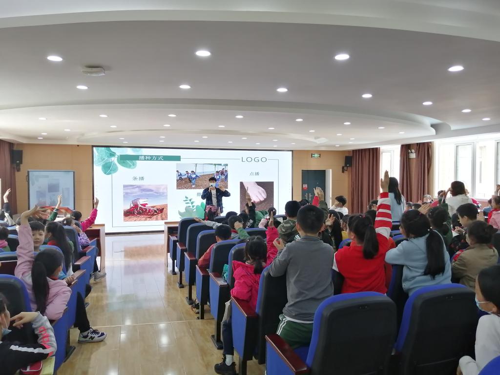 活动伊始,来自三田创新工作室的彭奕鸣带领同学们一同背诵了耳熟能详的诗歌——《悯农》。接着,彭奕鸣提问道:“挑选种子是播种环节中很重要的过程,同学们认为选择什么样的种子合适呢?”同学们积极踊跃地发言,其中一位女生回答道:“种子的大小要刚刚好,不能太大也不能太小,且长得比较饱满的会更合适。”老师肯定了她的回答并且给予了奖品。