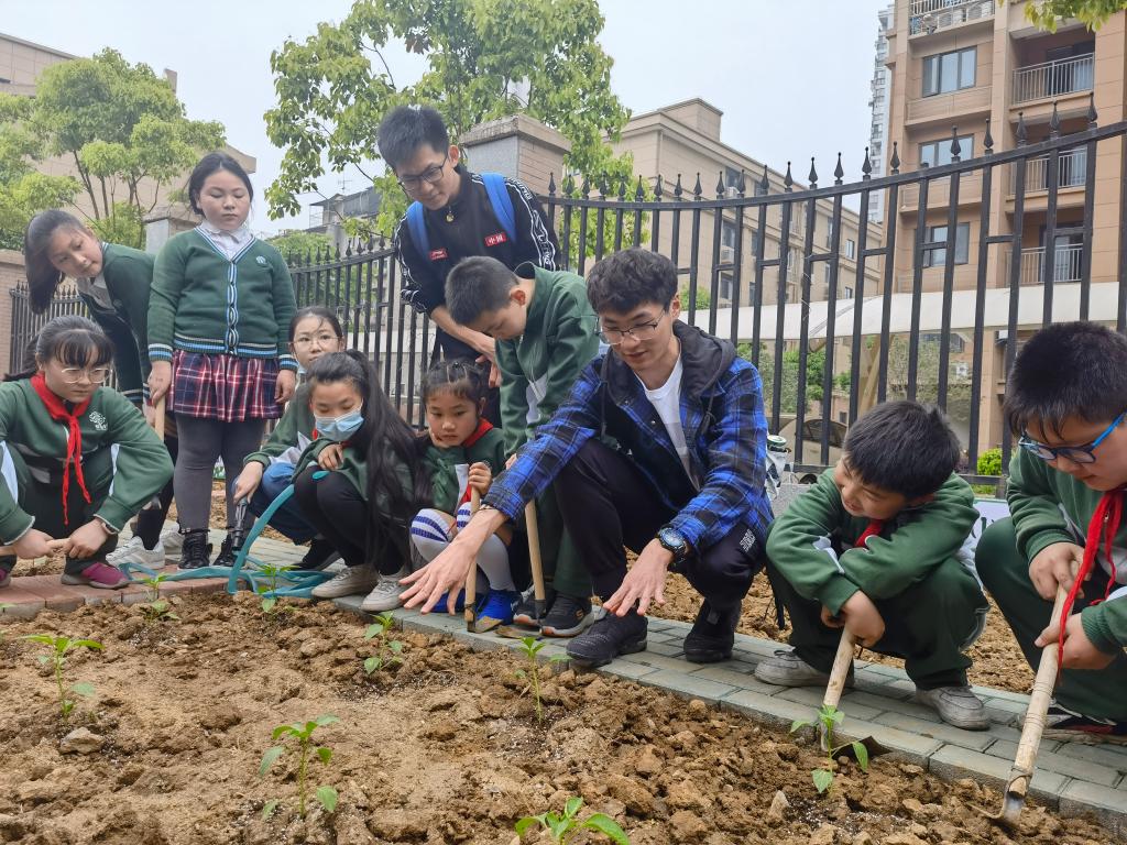 4月15日中午,我院青年志愿者服务部与三田创新工作室共同前往汉阳区楚才小学开展志愿服务。志愿者们为同学们讲解了如何栽培作物,并带领他们在幸福种植园中亲自动手来体验劳动的快乐。
