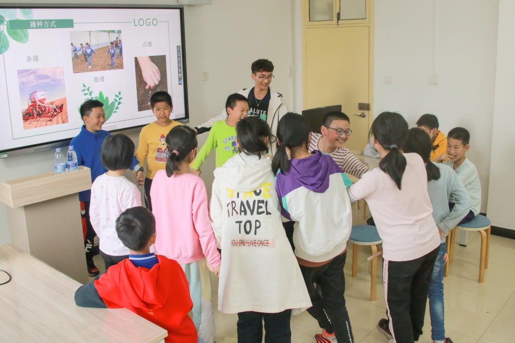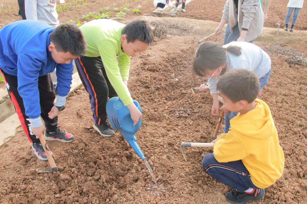 同学们学习播种知识后,在工作人员和志愿者的带领下来到了试验田。用铁锹挖坑、弯腰播种、装水浇灌,同学们辛勤劳作,种下了一排排向日葵、花生、大豆和玉米种子;学习知识、躬耕劳作、萌发好奇,通过此次活动,同学们也真正做到了学以致用。植生2007班的志愿者潘雅丽说道:“这类活动不仅可以增加孩子们的动手能力,更让久居城里的他们能感受到传统农业的乐趣。活动中,我也感受到了属于孩子们的朝气和活力,从他们身上我彷佛看到了小时候长蹲在田野边观察菜苗的自己。”