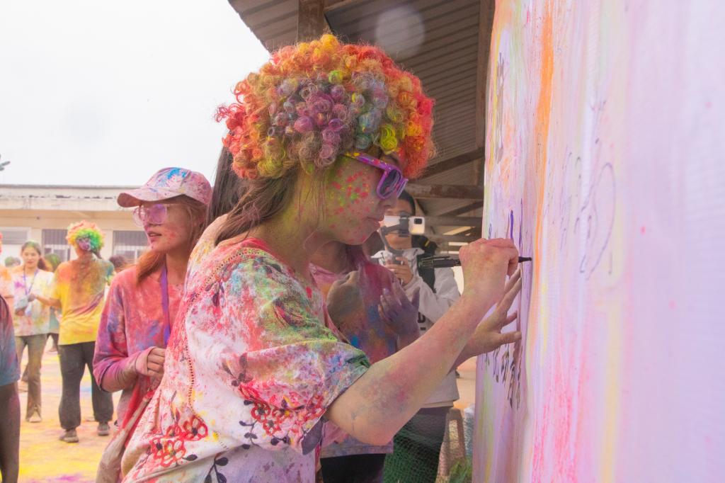 到达终点后,主办方为所有参与者发放了彩虹粉,供大家肆意玩耍。大家都肆无忌惮地喷洒着手中的彩虹粉,一时间,玉米基地变成了一个大型欢乐海洋,彩色的玉米粉描绘出一道道彩虹,明亮了整个天空。举办本次彩虹跑的目的,负责人杨宇杰这样说,彩虹跑活动就是一个集健身娱乐为一体的活动,我们已经策划了很久,充分利用华农可食用的无害玉米粉制成彩虹粉,让大家体会不一样的运动,彰显华农的特色,跑出华农未来的无限可能!