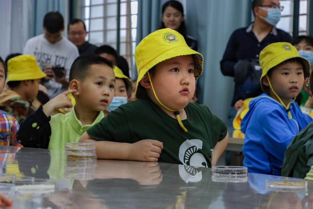 “水稻成熟需要什么?”“阳光、水还有土壤!”在三田基地,全国粮食安全宣传教育基地第二期“小小农艺师”科普活动正在进行。全校40名教师携带小朋友参加了本次科普活动。