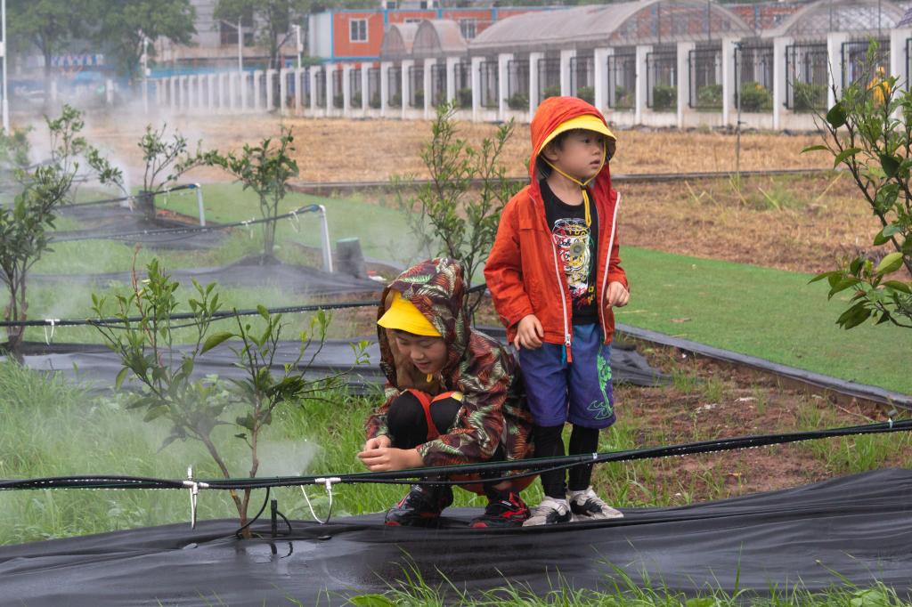在《果园里的机器侠》课堂上,小朋友们来到智慧果园,园艺林学学院研究生陈爽以柑橘为例详细介绍了智能化的果树种植与防治体系,并将其与传统方式相对比,让小朋友们了解到新方式可以减少农民伯伯的劳动负担。陈爽还通过介绍光合作用以及氧气与二氧化碳的区别,向小朋友讲解了植物对人类的重要性,传达了植物保护的思想。