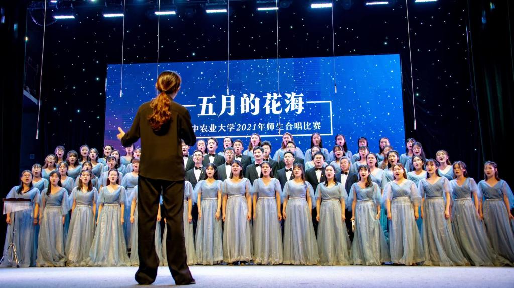 随后,合唱比赛正式开始。此次师生合唱比赛以“五月的花海”为主题,共有来自全校的14个学院的合唱团参加此次比赛。