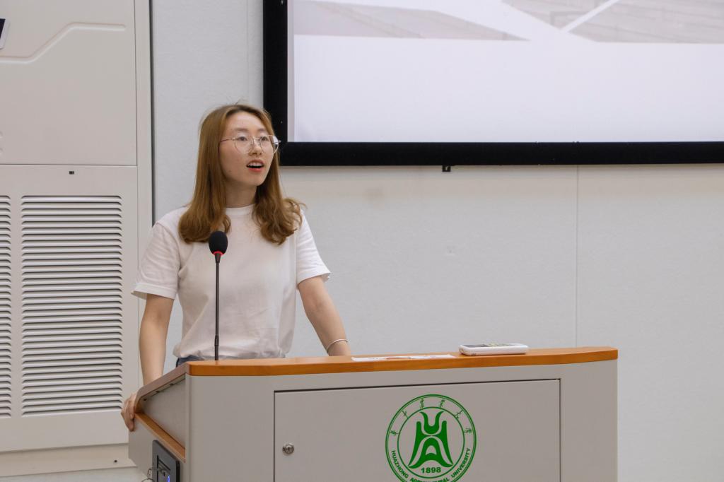 随后,由陆雪、屠瑜璐两位17级学姐分享她们的社会实践经验。陆雪分享了他们团队在罗朝喜老师的带领下,前往湖北、山东等地进行调查研究的过程,并从团队构建、实践内容、成果总结三个方面给出了自己的建议。屠瑜璐则结合“追寻红船原乡,嘉兴筑梦之旅”的红色实践,从定主题、初落实、写策划三个部分进行分享,并向同学们展示了团队的实践成果。