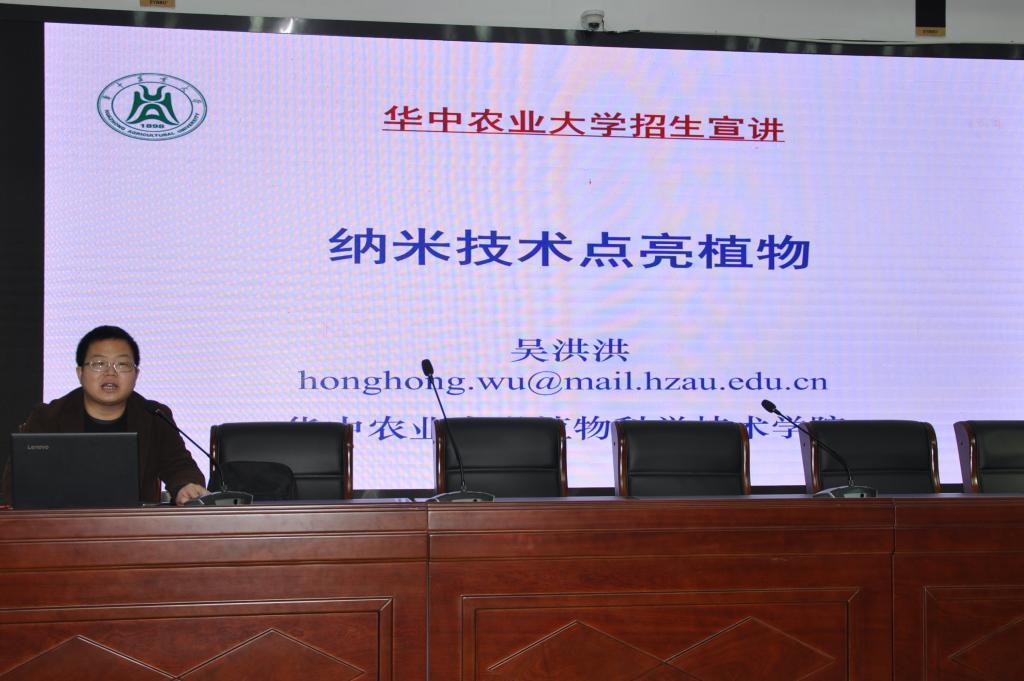 12月8日下午,学校赴鄂州高中开展招生宣传,植科院吴洪洪教授、马克思主义学院唐尚书博士为180名高中学子分别开展了以“纳米技术点亮植物”和“千年敦煌之美”为主题的科普宣讲,现场反响热烈。