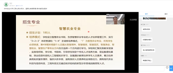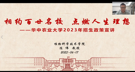 最后,鄢文豪向大家发出邀约:“欢迎各位考生、各位考生家长提前来到华农,看一看我们的山水校园,看一看科研场地,了解华农的环境如何帮助同学更好的成长。”