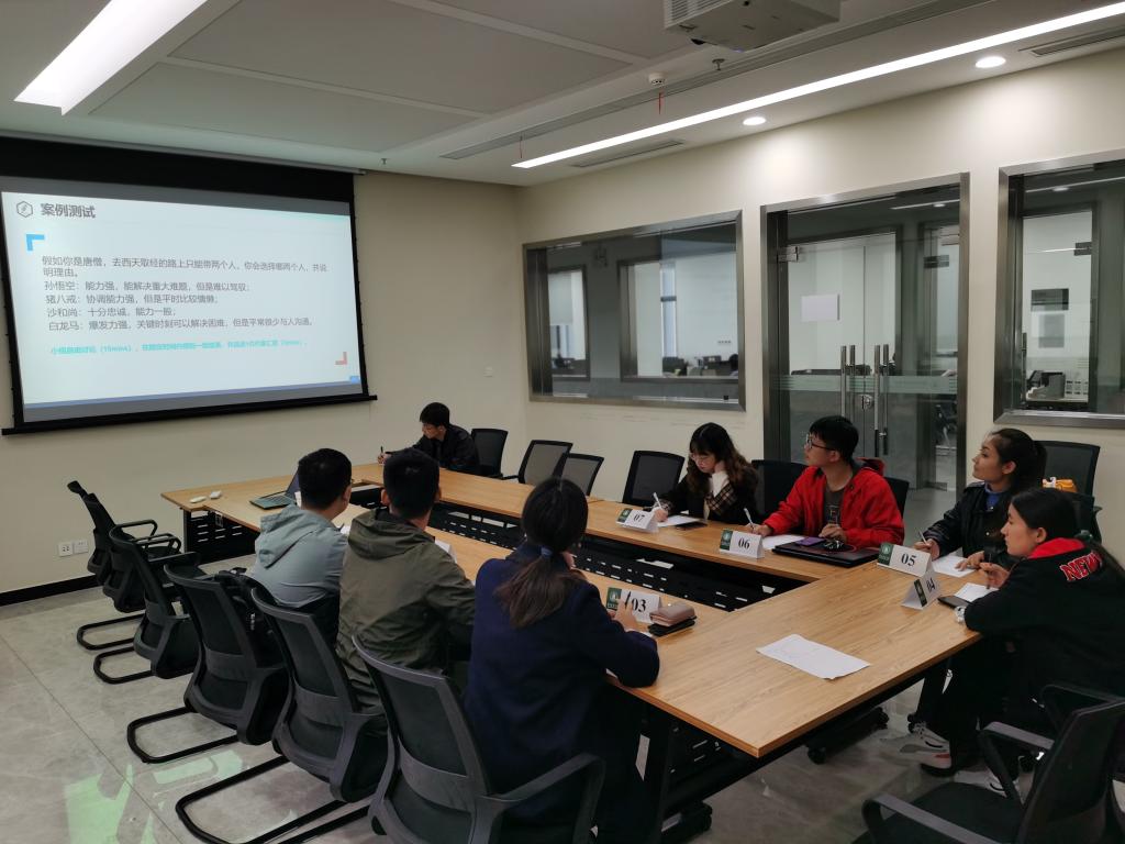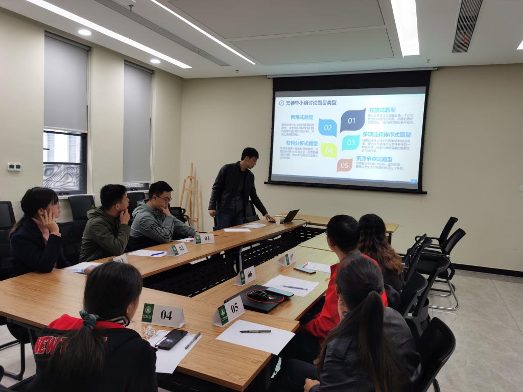随后,刘超为同学们开展面试模拟培训。在介绍面试的技巧和注意事项后,他带领大家模拟无领导小组讨论。在讨论结束后,刘超结合每位同学的表现,逐一点评。他不仅指出大家的闪光点,还详细针对每位同学所出现的问题给出建议和方法。他强调:“求职者一定要站在面试官的角度思考每一个问题,同时不忽视细节,不拘泥于自我思维。”