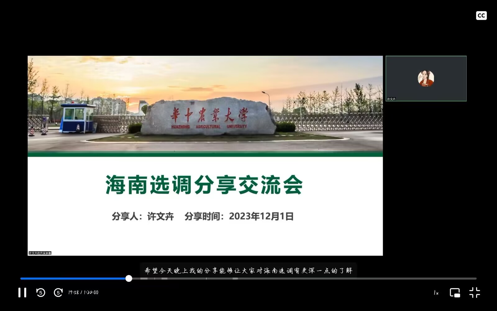 12月1日晚,为了帮助同学们明晰未来职业规划,我院联合水产学院邀请我校经济1901班毕业生、现中共临高县委办公室试用期公务员许文卉,分享2022年参加海南选调成功上岸的经验。主持人凌体桀介绍了许文卉的相关情况后,会议正式开始。