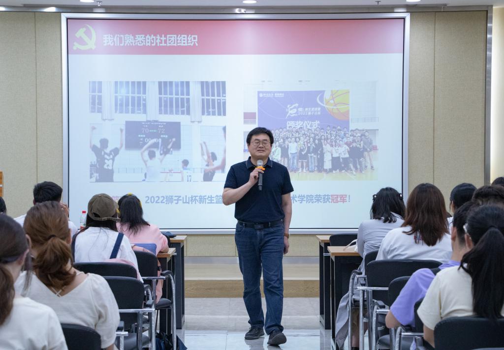 随后,周雄介绍了政党的基本概念并讲述其根本问题:党是什么,要干什么,干成了什么?他从中国共产党的成就、性质、理想和宗旨等方面展开分享。在谈及为什么要加入中国共产党时,周雄以钱学森的入党申请书为例:“我回国近三年来受到的关于党的教育,使我体会到了党的伟大。我愿为实现共产主义社会这一伟大目标奋斗并忠诚于党的事业。”以先辈们的事迹为例,证明了加入中国共产党是自觉理性的选择,是持续坚定的选择,是正确必然的选择。