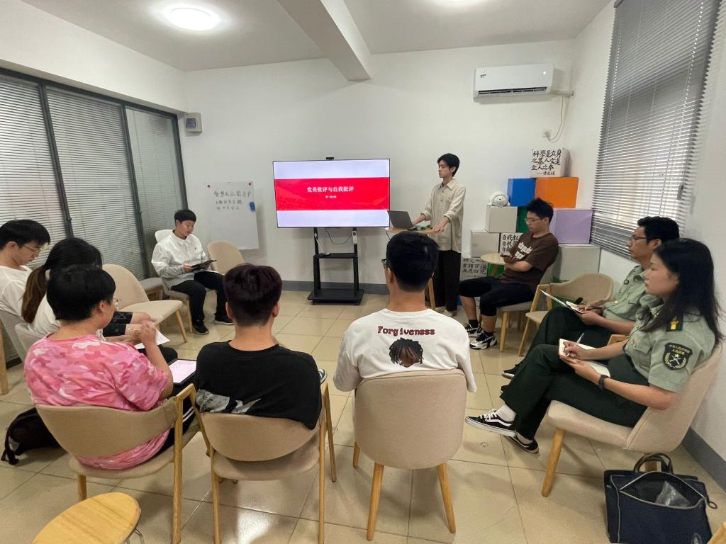 组织生活会上,金业宸代表党支部委员会报告了半年来党支部工作情况,特别是开展学习贯彻习近平新时代中国特色社会主义思想主题教育的情况;代表支部作对照检查发言,他提到,支部存在主题党日活动形式单一、联系团员群众不够密切等问题党员提出批评意见;金业宸作个人对照检查发言,党员依次开展批评和自我批评。