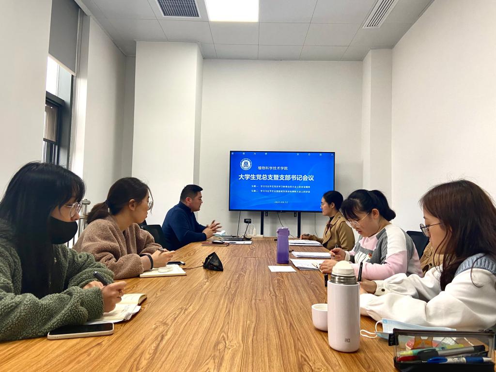 3月12日下午,植科院大学生党总支在三综B310开展学习交流活动,集中学习习近平总书记在党史教育动员大会和脱贫攻坚总结表彰会上的讲话精神。学院大学生党总支副书记贾浩洋和本科生党支部负责人参加会议。