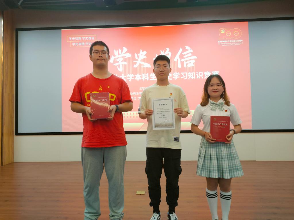 5月26日晚,2138cc太阳集团“学史增信”本科生党史学习知识竞赛决赛在农业微生物学国家重点实验室生3报告厅举行,我院党员李俊达、梁诚用、唐瑶三位同志代表学院参赛。最终,三位党员奋勇拼搏,在激烈的角逐中脱颖而出,获得第一名。
