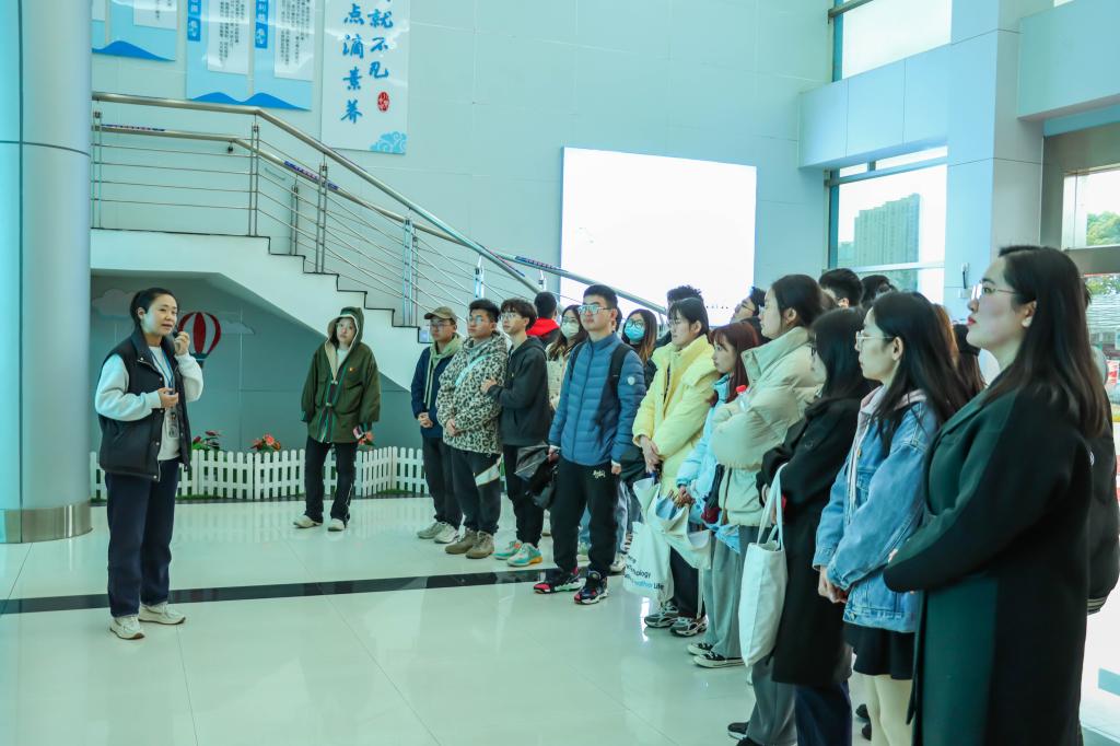 参观期间,讲解员从伊利第五代标志出发,介绍了伊利乳业的公司历史和企业风貌,同学们走过黄冈伊利的文化长廊,了解企业文化。