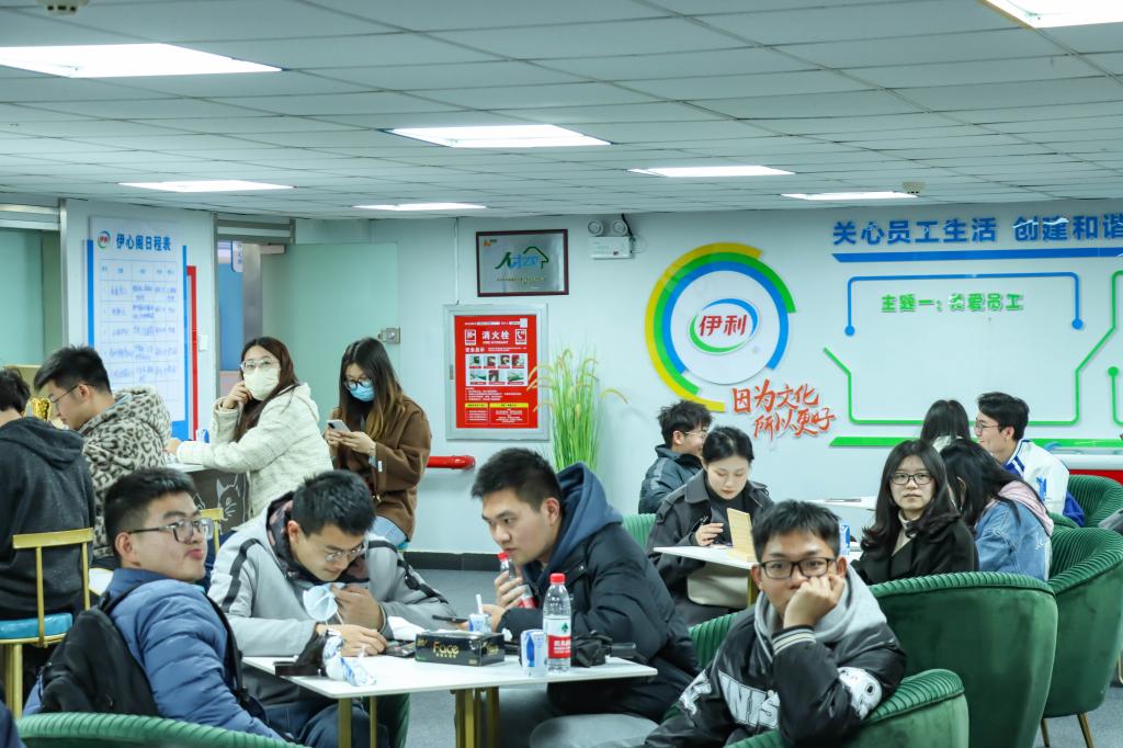 来到产品展示区,琳琅满目的各式乳制品让参观的同学们连连发出惊叹。黄冈伊利的产品涵盖了冰激凌、常温牛奶、奶粉和奶制品等。跟随着讲解员的说明,同学们详细了解了伊利旗下的各个子品牌,也对乳制品行业产生了浓厚的兴趣。走过展示区后来到的生产车间参观区域,更是牢牢吸引了同学们的目光。“这里是凝冻区,冰激凌在流水线上被送入这里之后会快速地冷冻……”同学们不时提出问题,讲解员逐一从专业角度进行了回答。活动最后,同学们在伊心阁品尝了生产的冰激凌和酸奶,并就所关心的企业工作、人才培养等方面的问题与企业工作人员进行了沟通交流。