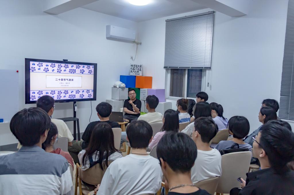 “春雨惊春清谷天,夏满芒夏暑相连。秋处露秋寒霜降,冬雪雪冬小大寒。”唐尚书从“二十四节气之起源”“二十四节气与民俗”“二十四节气与非遗”“二十四节气创意”四个方面向同学们系统地介绍二十四节气文化。他重点讲述了贵州省“石阡说春”、浙江衢州“九华立春祭”、浙江杭州“半山立夏节”、广西壮族霜降节、浙江省“三门祭冬”等国家级非物质文化遗产代表性项目名录。他谈到,中国目前正走在文化强国、文化自信的道路上,有越来越多的传统文化登上了现代的舞台,并被列入文化遗产当中,这是值得每一个人欣喜的,他希望大家能在学习之余多多观察生活,在传统的二十四节气和民风民俗中不断发现和体验中国传统文化的内在美。