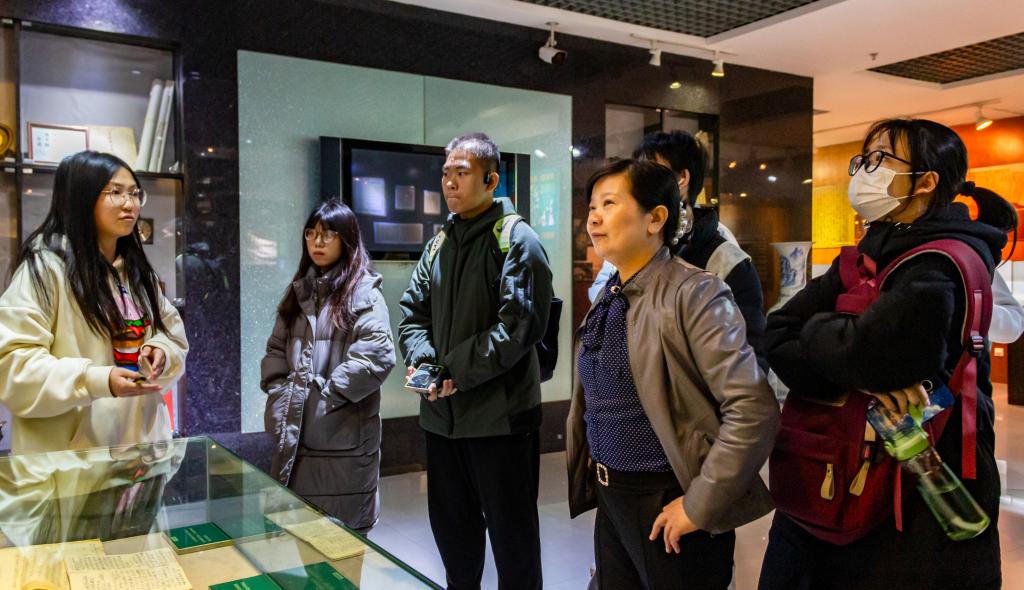 活动开始前,黄运丽带领植科院十余名大一、大二学生走进校史陈列馆,在观摩陈列史料的过程中,引导学生们感悟华农百廿校史中的科技进步与华农人的担当。本次参观由外国语学院22级学生周悦阳担任讲解员,从门口的对联、入门的校训到馆内的成就展示、标本展览,周悦阳详细地为同学们解说每一行文字,每一件展品背后的动人故事。期间,黄运丽老师对其解说进行补充,以生动的叙述讲述百年星火传承不息的历史。