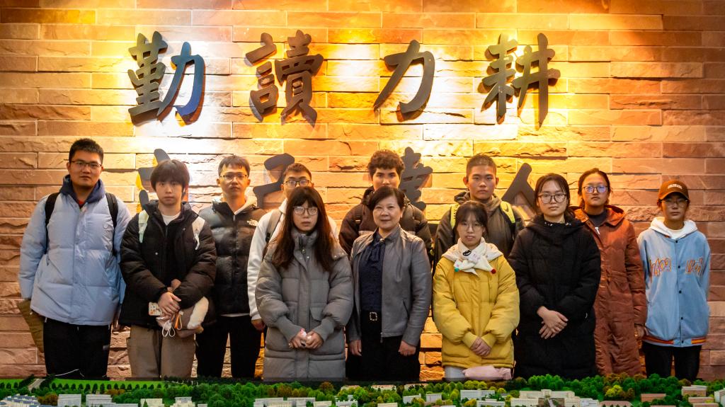参观结束后,师生齐站在“勤读力耕,立己达人”的校训前合影留念,既作纪念,也是激励。