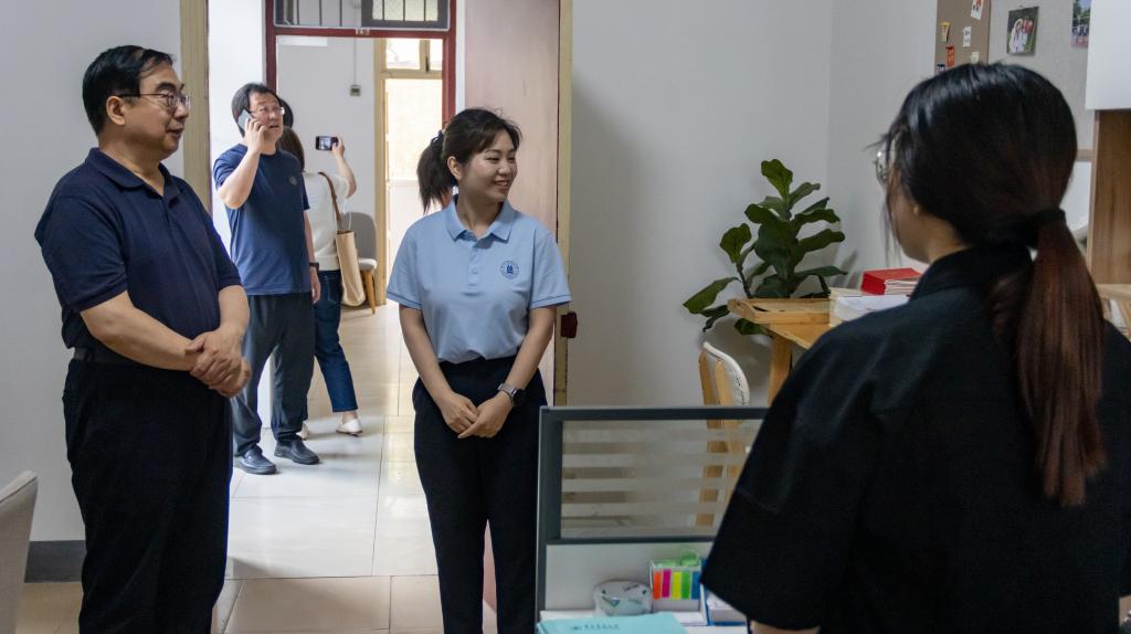 王英一行先后参观了学生驿站、辅导员值班室、图书角、24h自习室、问学斋等,详细了解了辅导员“五同”工作传统、智慧农业书院的运行模式和育人成效,围绕学生社区建设、宿舍安全管理等内容进行了深入交流。