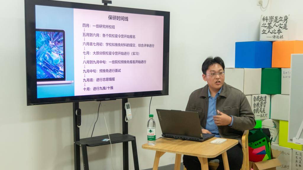 随后,陈广桓就保研相关问题为同学们逐一解惑。“保研怎么报?”“什么时候报?”“在哪里报?”陈广桓以此为切入点,围绕保研时间线、保研报名建议、保研材料汇总、保研面试要求与技巧等方面进行了详细的讲解。“学习成绩优秀是每一位想要保研的同学必须达到的条件,建议同学们每天做好一件事,每天进步一点点。”陈广桓最后以此勉励大家,希望同学们保持自信,认真对待每次课堂,夯实基础,拥抱美好大学生活。