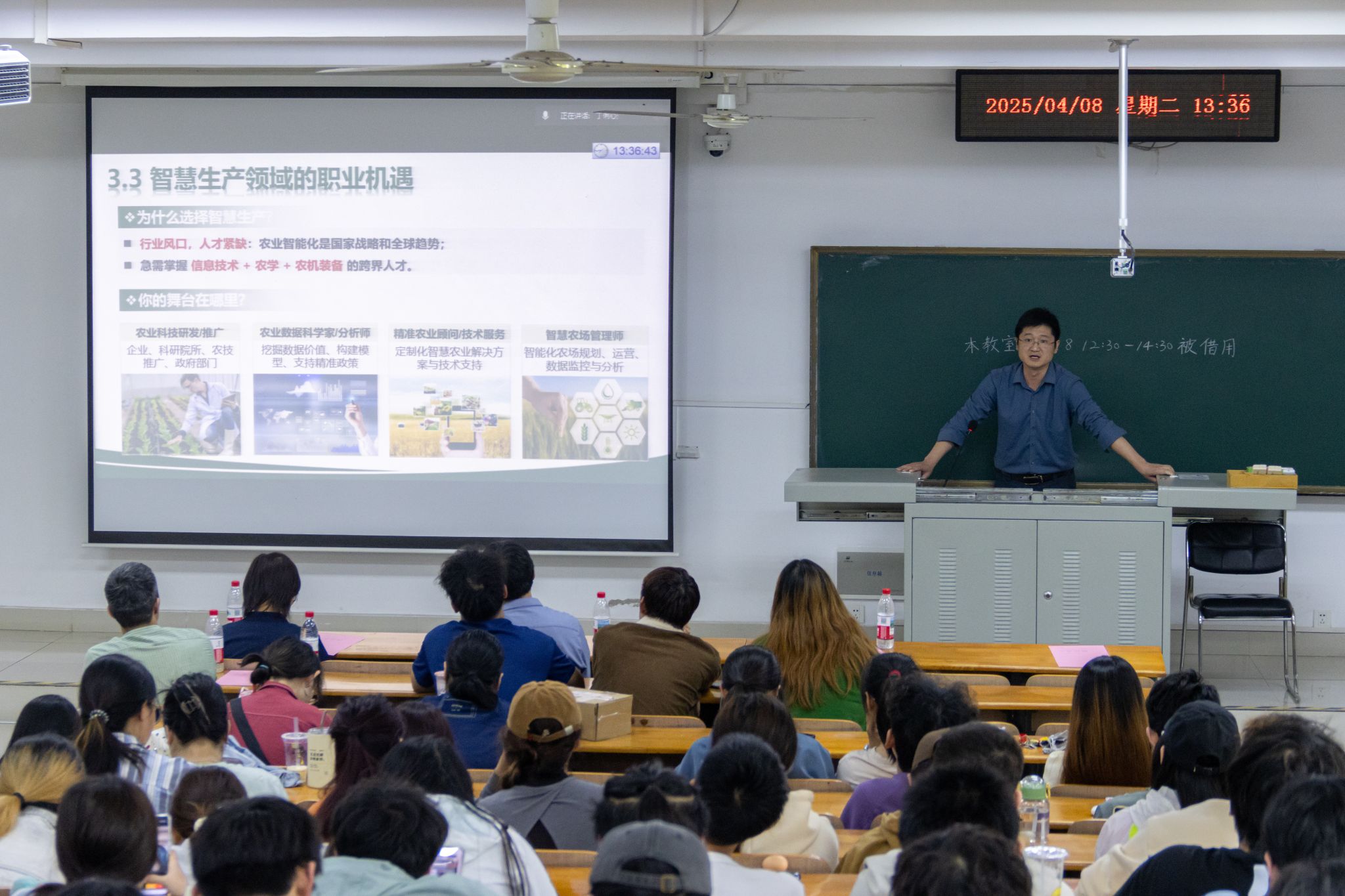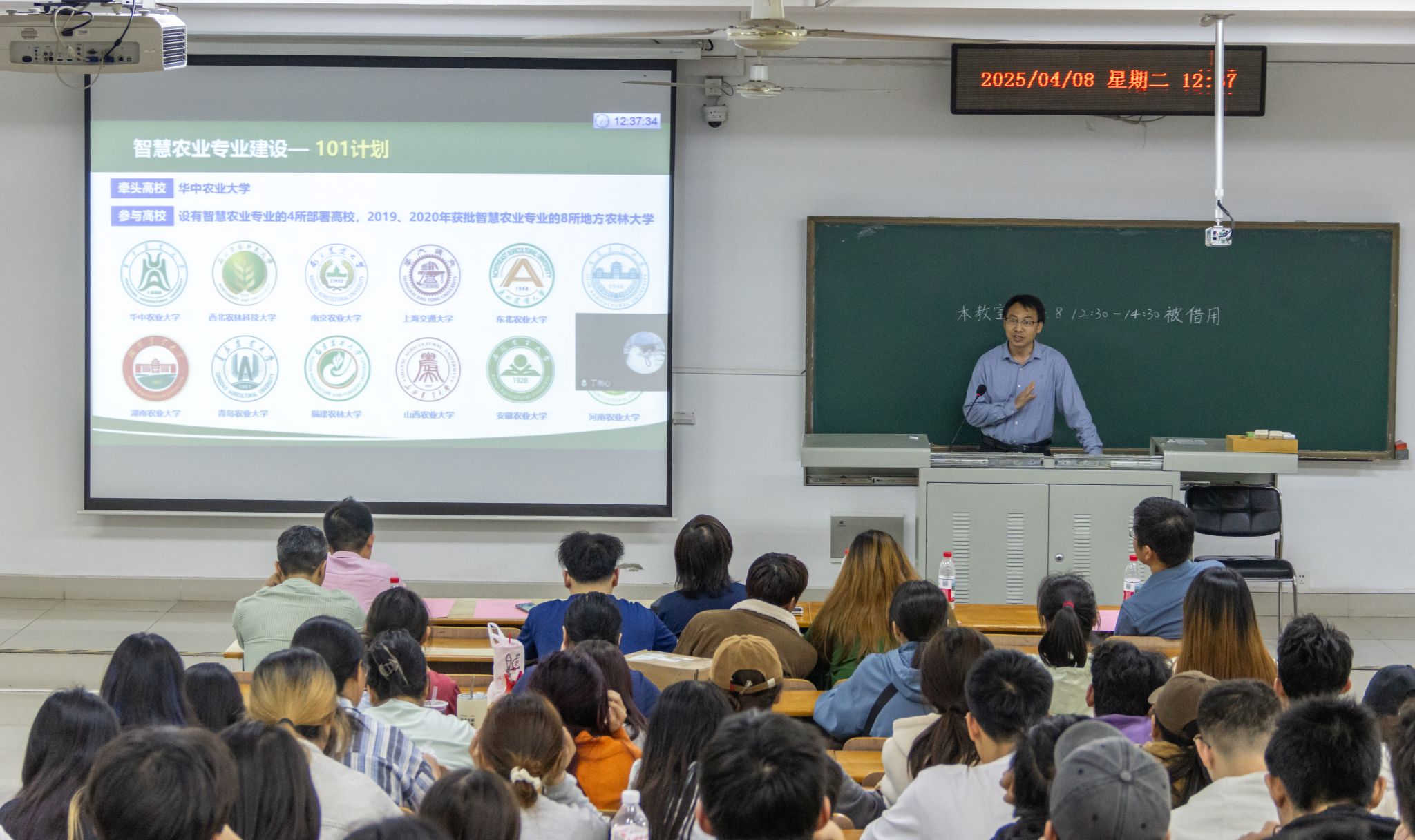 4月8日中午,2023级智慧农业专业方向分流宣讲会于三教C205教室召开。智慧植保方向罗朝喜教授、智慧育种方向李林教授、智慧园艺方向黄远教授、智慧生产方向熊栋梁教授、智慧渔业方向曹小娟教授、智慧牧业方向李竞一研究员受邀为同学们详细解读各方向特色与发展前景,会议由书院辅导员宋慈主持。