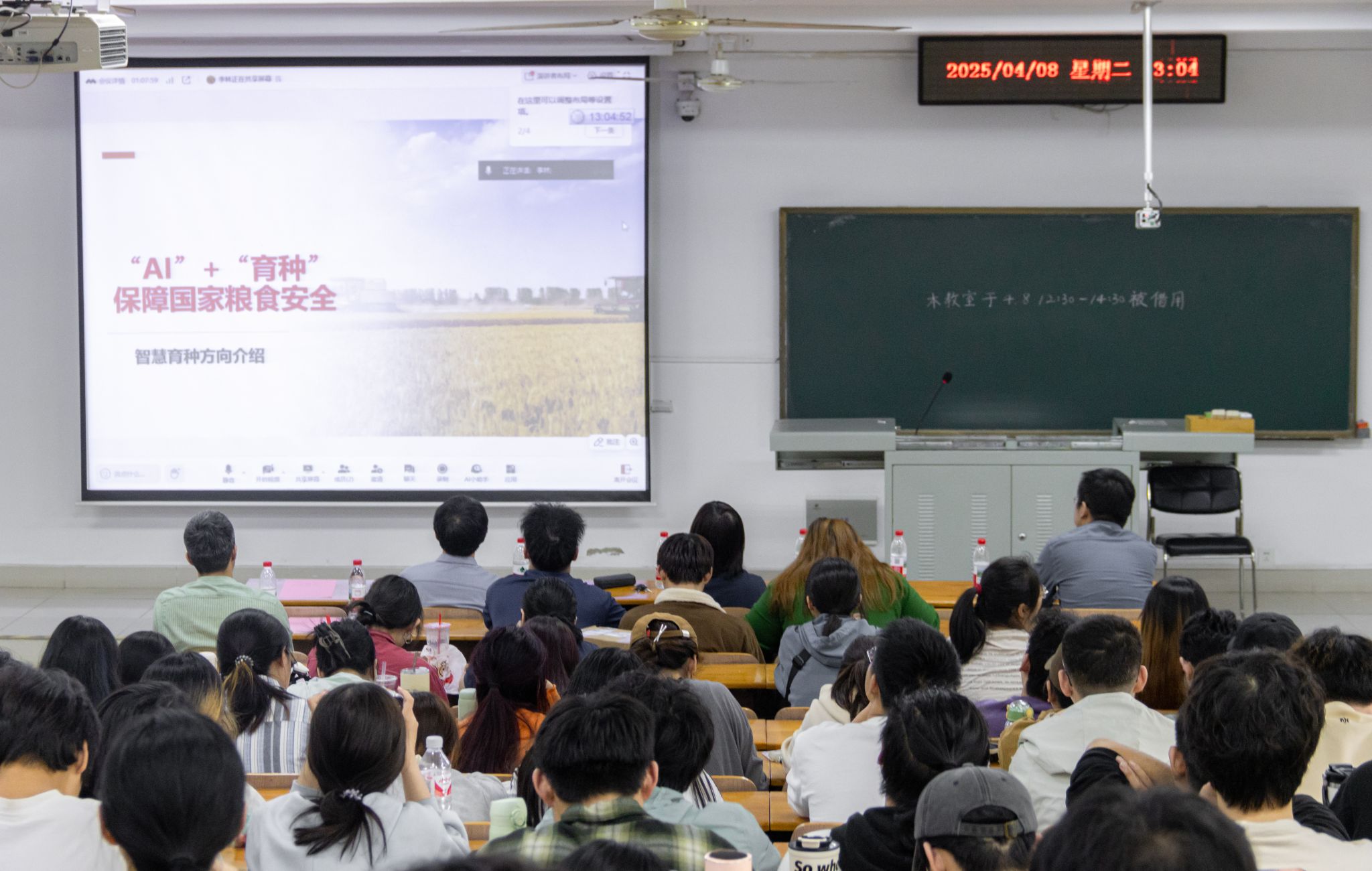 “21世纪是生命科学的世纪,农业是生命科学的重要领域。”李林以生命科学为切入点,从人类驯化与生物改良讲到智慧育种,阐述了大数据时代对智慧育种的推动作用。他指出,智慧育种是基于现代生物技术、信息技术和人工智能深度融合的新范式,不仅能显著提高育种质量,还能为种植、园林、水产、养殖等提供优质种源。他鼓励同学们选择智慧育种方向,成为学科交叉型人才,并希望同学们根据兴趣爱好,找到人生方向,选择适合自己的道路。