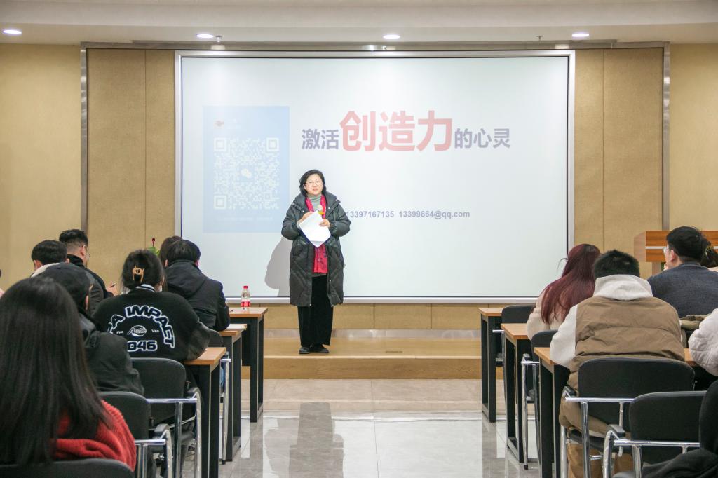 开班仪式后,冯楠就校园文化氛围营造、活动项目孵育和组织等方面作以“激活创造力的心灵”为主题的交流分享。她先以“狮山文谷”的优秀案例,为大家展现了创造力的重要性,并提出了激活创造力的三个阶段,即:提出主意、聚合创意、创造意义。她指出,首先要以积极的意愿、试错的勇气、多维的视角以及开放的心态来提出主意,具有以上四种特质的健美心灵是拥有爱与创造能力的基础。接着,她表示,在聚合创意时,要在自在的氛围里,在平等的原则上,对创意进行高位的甄选,最后再对自己的创意进行精心打磨,如此一来,才能激发出具有一流水准创意。最后在明确创造意义上,她强调,一个有意义的创意,是具有清晰主旨的创意,不但具有内生需求,还能联通感情和升华价值。最后,冯楠呼吁学员们要过上具有创造性的生活,超越已知、超越诱惑、超越角色,激活创造力的心灵。
