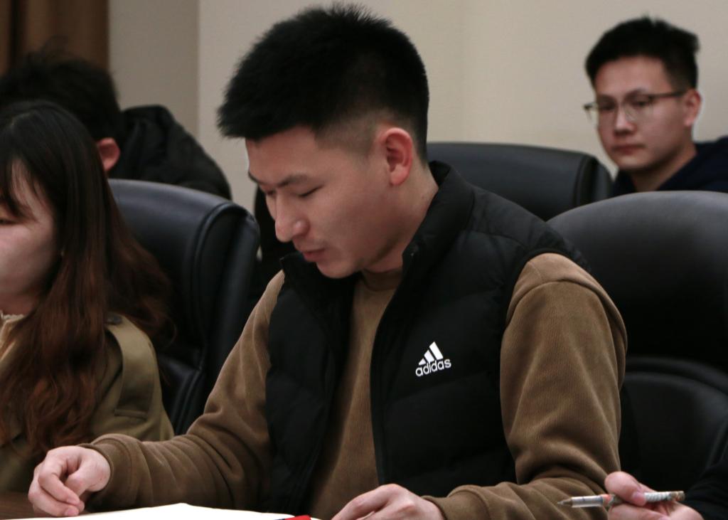 会议伊始,四位支部书记针对2月份的时事政治依次进行领学。育种第三党支部书记庄季昕就“习近平总书记在中央农村工作会议上的重要讲话”进行分享,她谈道:“华农95后硕士彭达发起‘菱辟蹊径,强农兴农——菱角全产业链赋能乡村振兴项目’,帮助农民增收致富,展现了作为农科学子应有的责任与担当”。育种第八党支部书记付超对2023年发布的中央1号文件进行领学,他认为:“作为党员的我们要紧密团结在以习近平同志为核心的党中央周围,坚定信心、踔厉奋发、埋头苦干,全面推进乡村振兴,加快建设农业强国,为全面建设社会主义现代化国家、全面推进中华民族伟大复兴作出新的贡献”。 农药专业党支部书记任志杰就“习近平总书记在中共中央政治局民主生活会上的重要讲话”展开领学。农昆第二党支部书记罗仁刚解读了“习近平总书记在学习贯彻党的二十大精神研讨班开班式上的重要讲话”的会议精神。