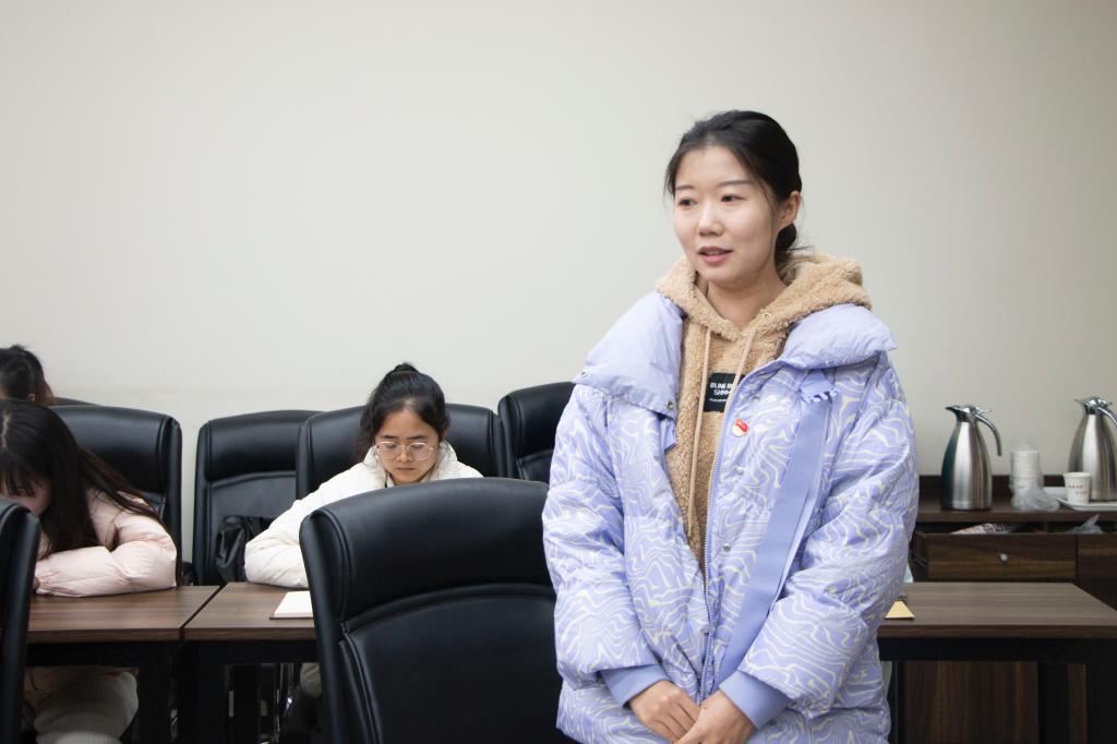 紧接着,本科生辅导员宋慈老师进行讲话。首先她指出在听会的过程中各个党支部书记需要做好会议记录,将所学到的心得和感悟记录下来,作为日后丰富和补充理论知识的一个有效途径。其次她强调党支部书记需要做好榜样,要先学、先懂、先弄透理论知识的内涵,再去给支部的同学进行讲授。最后她希望支部书记之间要相互监督,对于所领学的内容,要提前做好充分的准备。