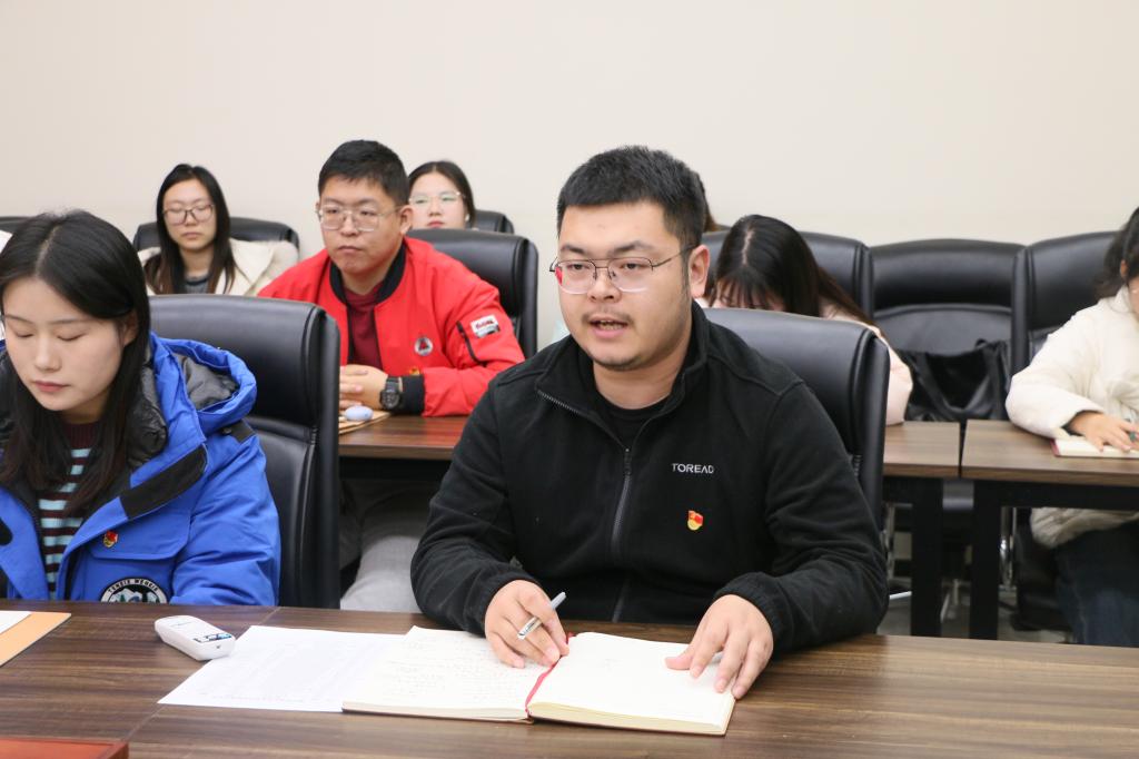 领学完毕后,植物病理专业研究生第五党支部书记张诗雅、作物栽培专业研究生第一党支部书记朱贺洁、农业昆虫专业研究生第三党支部书记张云慧、作物遗传育种专业研究生第六党支部书记张涵和本科生党支部书记龚坤轩分享交流了学习后的感悟与心得。